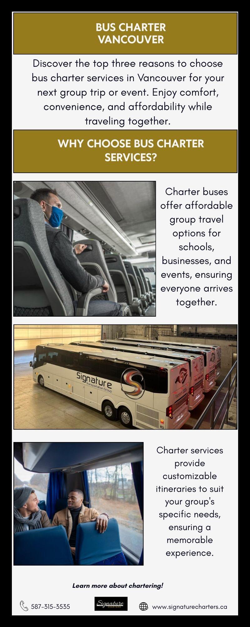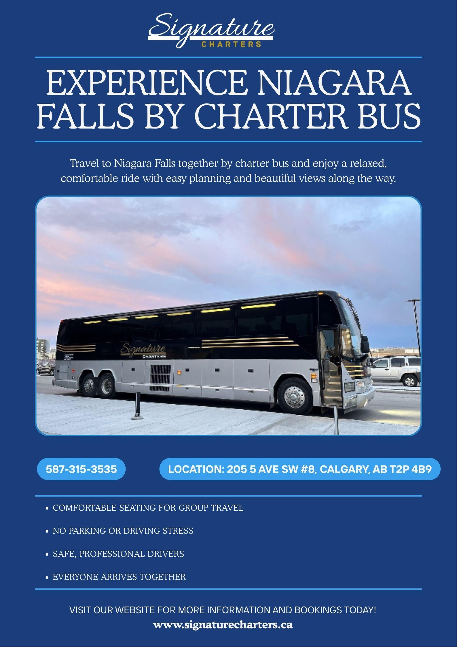 Learn More: https://signaturecharters.ca/niagara-falls-charter-bus-rental/A Comfortable Way to Explore Niagara Falls Together Experience Niagara Falls by charter bus and enjoy a smooth, stress-free group journey. A charter bus keeps everyone together, removes parking worries, and adds comfort to the trip. It’s an easy way to focus on the views, attractions, and shared moments—without the hassle of driving or coordinating multiple vehicles. Learn More: https://signaturecharters.ca/niagara-falls-charter-bus-rental/0 Comments 0 Shares - Bus Charter Vancouver – Easy Group Travel