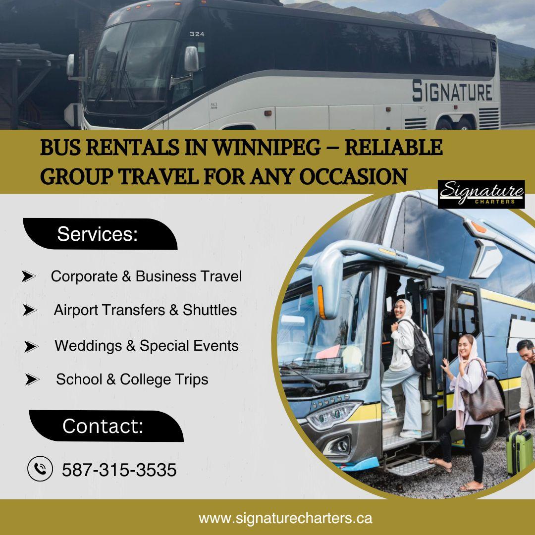 Learn more: https://signaturecharters.ca/charter-bus-rental-saskatoon/Bus Rental in Saskatoon – Stress-Free Group Travel Travel planning becomes easier with Signature Charters, delivering Bus Rental in Saskatoon designed for group comfort and convenience. Ideal for business outings and tours, it helps groups stay organized, arrive on time, and enjoy a smooth journey. Learn more: https://signaturecharters.ca/charter-bus-rental-saskatoon/0 Comments 0 Shares - Bus Rentals In Winnipeg – Reliable Group Travel for Any Occasion