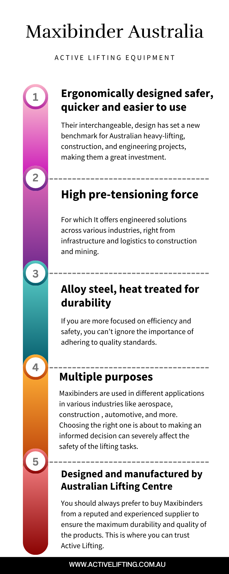 - Active Lifting Equipment is a leading supplier of the best Maxibinder Australia that is ergonomically designed so that one can use them easily, safely and faster. This product supports a high-tensioning force. Made of quality alloy steel, it is heat treated to offer maximum durability. Manufactured by the well-known Australian Lifting Centre, you can use it for different purposes. Visit us :