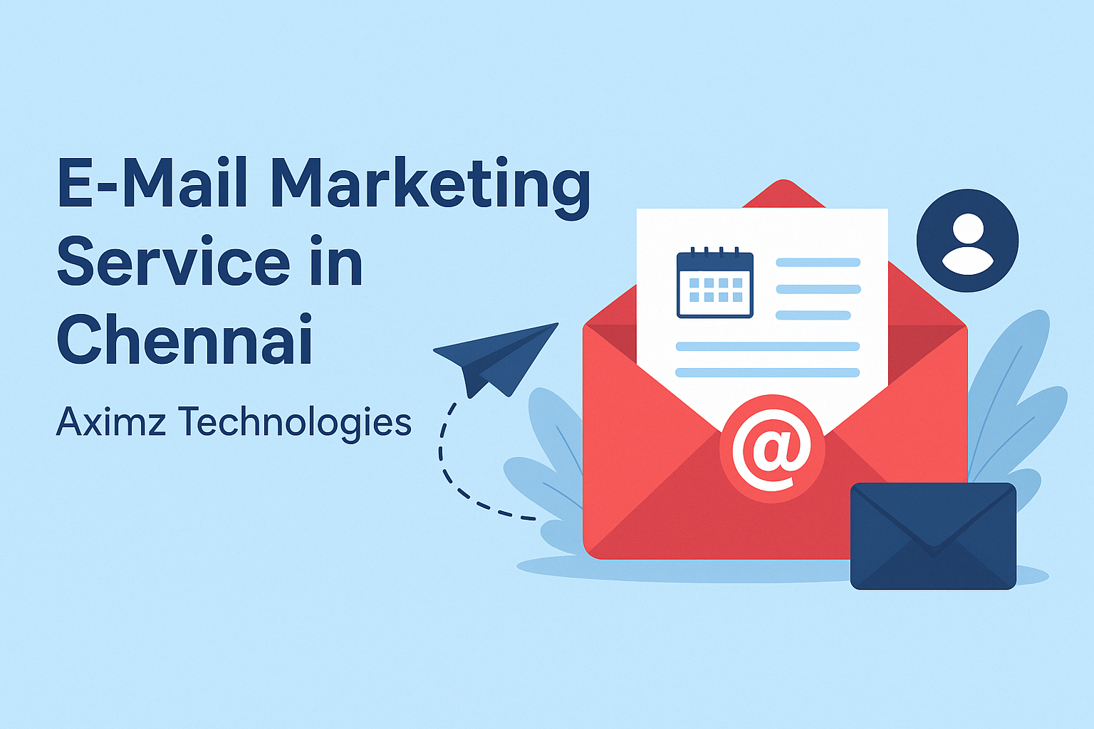 Boost your business outreach with Aximz Technologies, the trusted provider of E-mail Marketing Service in Chennai. We help you connect with your audience through personalized, engaging, and result-driven email campaigns. Our services include targeted mailing lists, eye-catching templates, automated workflows, and performance tracking to maximize open rates and conversions. Whether you want to promote products, nurture leads, or retain customers, our expert team ensures your message reaches the right people at the right time. Choose Aximz Technologies for professional E-mail Marketing Service in Chennai and watch your brand engagement and sales grow effortlessly.
