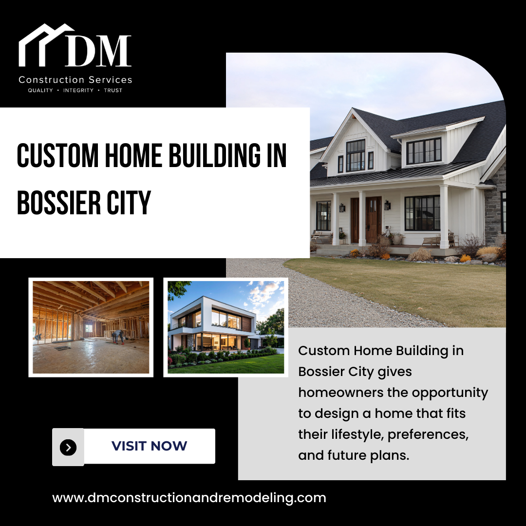 Visit Now :- https://dmconstructionandremodeling.com/custom-home-building/Custom Home Building in Bossier City Custom Home Building in Bossier City allows homeowners to create personalized spaces designed around comfort, functionality, and long-term living. From custom layouts to quality materials, every detail is planned to match your lifestyle and future needs. Build a home that reflects your vision with professional guidance from DM Construction Services. Visit Now :- https://dmconstructionandremodeling.com/custom-home-building/0 Comments 0 Shares - Professional Exterior Painters in Shreveport You Can Trust