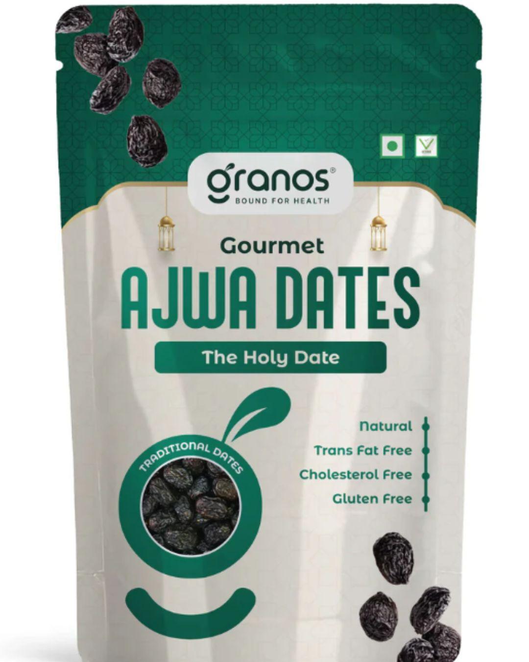 Granos Ajwa Dates, sourced from Saudi Arabia, deliver rich taste and nutrition in every bite. Soft, sweet, and packed with fiber, iron, and vitamins, they’re perfect for boosting energy and immunity. 100% natural, gluten-free, and preservative-free, enjoy premium Ajwa Dates at just ₹950 for 500g from Granos India.