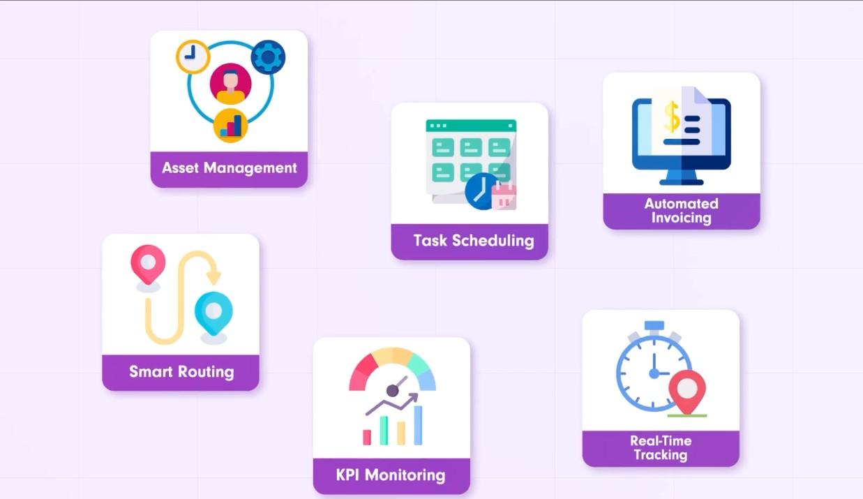 An overview of the top features in modern trash hauler software; including garbage route optimization, real-time tracking, asset management, KPI monitoring, and automated invoicing to streamline waste disposal operations.