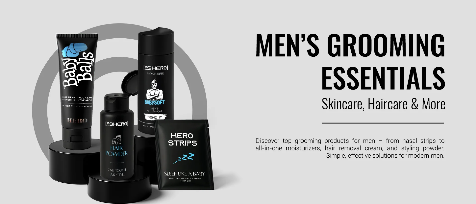 23HERO is an Australian men's grooming brand offering simple, effective self-care products — including hair removal cream, all-in-one moisturiser, hair styling powder, and nasal strips. Built for modern men who want no-fuss grooming that actually works.