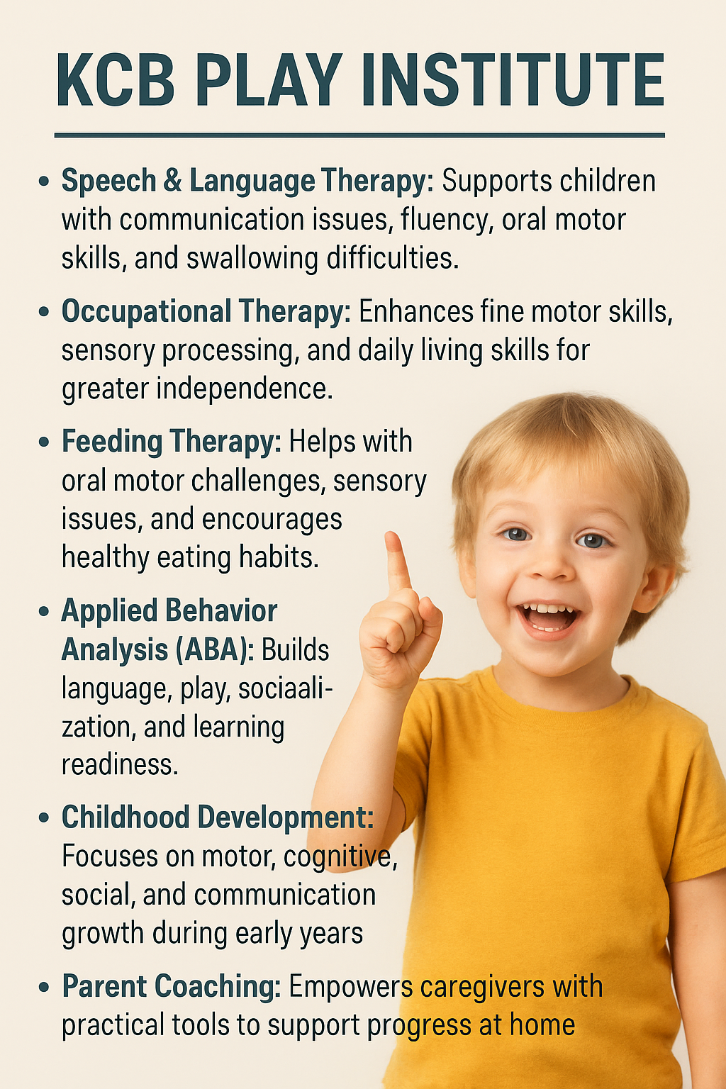 Speech language pathology services provide children with the tools they need to communicate, learn, and thrive. At KCB Play Institute, we go beyond traditional therapy by making every session fun, engaging, and effective. Through play, children build the confidence and skills they need for lifelong success.