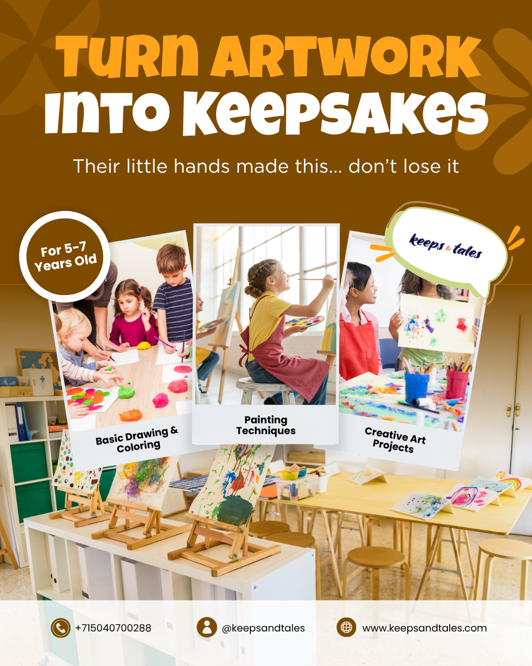 Website Link: https://keepsandtales.com/Creative Way to Save Kids Artwork Forever | Keeps & Tales Save your child’s precious artwork with Keeps & Tales. Their process digitizes and transforms drawings into elegant books and framed mosaics, helping families declutter while keeping memories alive. Website Link: https://keepsandtales.com/0 Comments 0 Shares