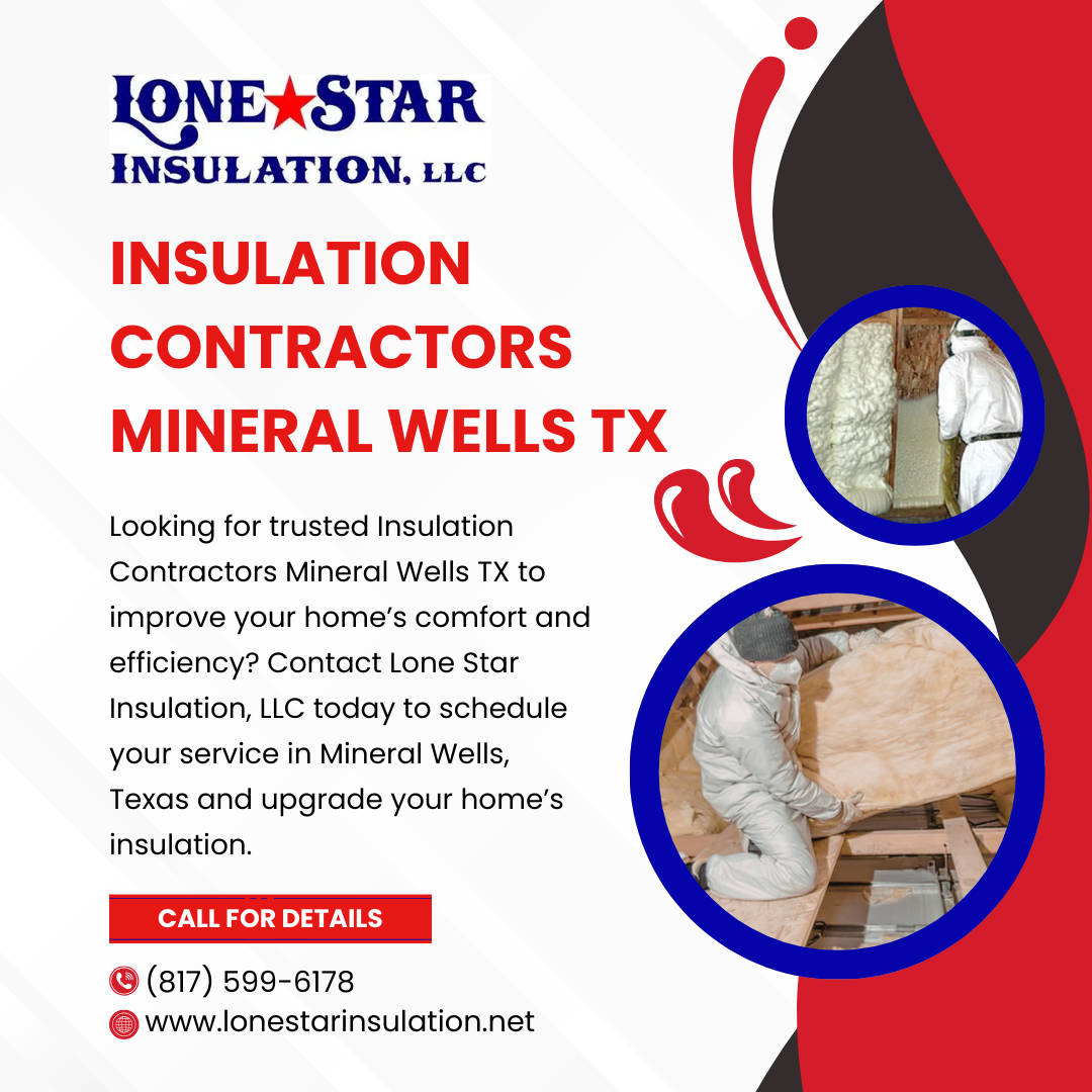 Visit Now :- https://lonestarinsulation.net/mineral-wells-tx/Professional Insulation Contractors Mineral Wells TX for Better Home Comfort Upgrade your home with expert Insulation Contractors Mineral Wells TX who deliver reliable insulation solutions for improved energy efficiency and indoor comfort. Proper insulation helps lower energy bills, reduce air leaks, and support HVAC performance. Whether you need attic insulation or spray foam, professional service makes a difference. Contact Lone Star Insulation, LLC today to schedule your insulation service in Mineral Wells, Texas. Visit Now :- https://lonestarinsulation.net/mineral-wells-tx/0 Comments 0 Shares - 5 Signs You Should Switch to Spray Foam Insulation in Fort Worth