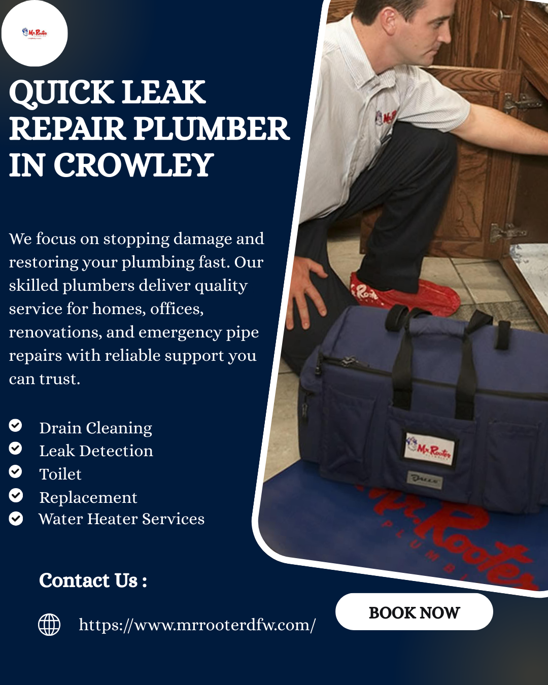 At Mr. Rooter Plumbing of Fort Worth, we understand that hidden leaks can cause serious damage if left unchecked. Our professional leak detection in Fort Worth uses advanced tools to quickly locate leaks in pipes, walls, and fixtures, even in hard-to-reach areas. We provide reliable, long-lasting solutions tailored to your home’s plumbing needs, helping you save water and prevent costly repairs. Our experienced team ensures clear communication and efficient service every step of the way. Don’t wait for small leaks to become major problems—call us today to schedule your inspection and safeguard your home. Visit Us: https://www.mrrooterdfw.com/water-leak-detection-repair-fort-worth-txCould Hidden Plumbing Leaks Be Causing Damage in Your Home? At Mr. Rooter Plumbing of Fort Worth, we understand that hidden leaks can cause serious damage if left unchecked. Our professional leak detection in Fort Worth uses advanced tools to quickly locate leaks in pipes, walls, and fixtures, even in hard-to-reach areas. We provide reliable, long-lasting solutions tailored to your home’s plumbing needs, helping you save water and prevent costly repairs. Our experienced team ensures clear communication and efficient service every step of the way. Don’t wait for small leaks to become major problems—call us today to schedule your inspection and safeguard your home. Visit Us: https://www.mrrooterdfw.com/water-leak-detection-repair-fort-worth-tx0 Comments 0 Shares - Need a Professional Plumber in Crowley for Repairs?