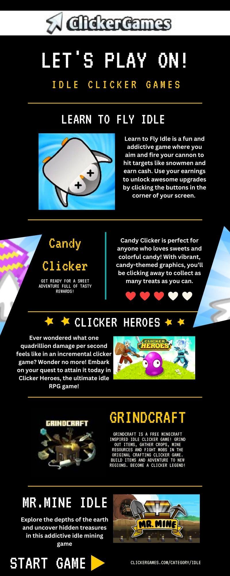 Best Idle Clicker Games ClickerGames.com offers a top collection of the Best Idle Clicker Games in one place. Enjoy hands-free progression, engaging mechanics, and endless upgrades with popular titles in the idle game genre. Play directly in your browser without downloads. Visit: https://clickergames.com/category/idle #IdleClickerGames #BestIdleClickerGames