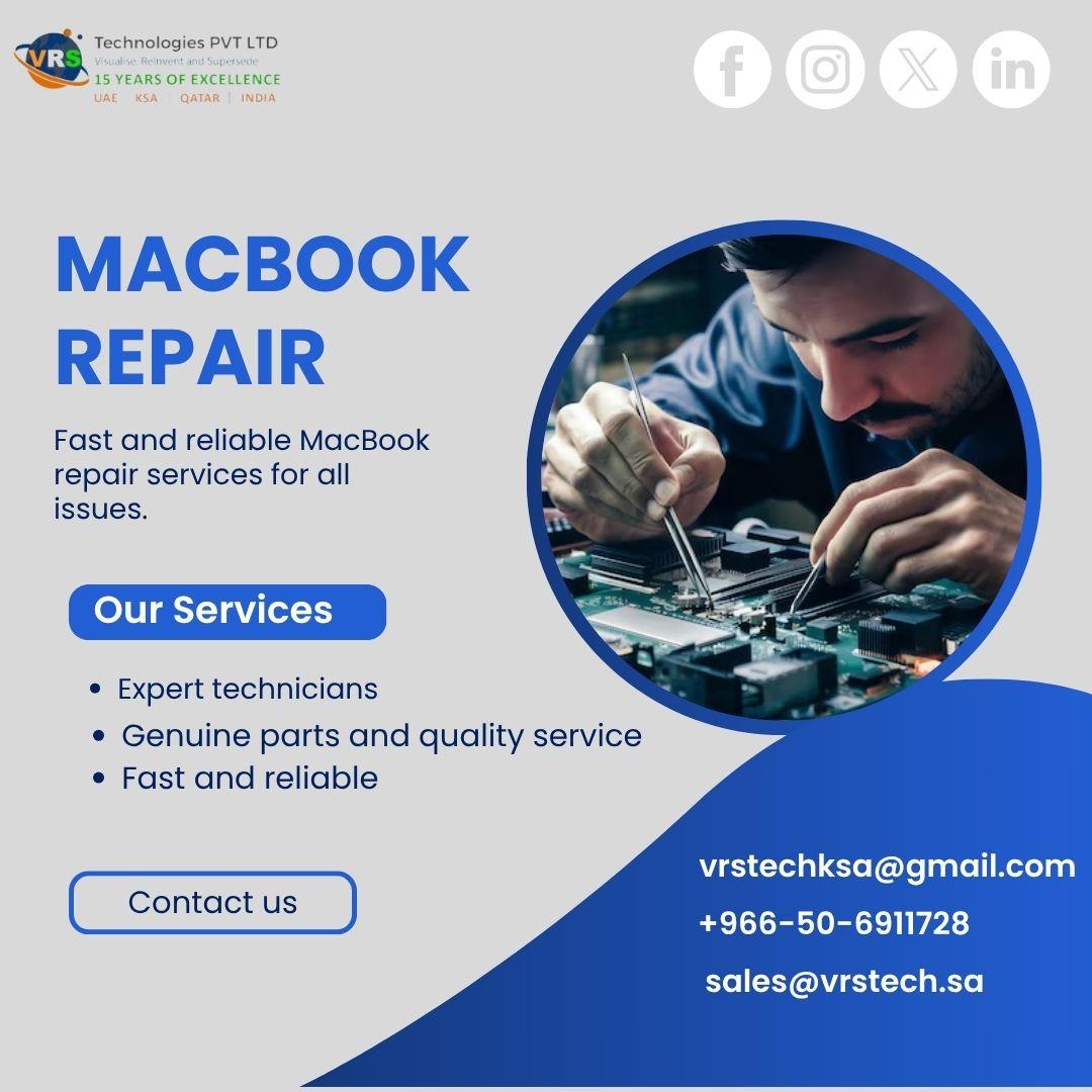 Get professional MacBook Repair services for screen, battery, and keyboard issues with VRS Technologies. Our skilled technicians ensure fast diagnostics and reliable solutions to keep your device running smoothly. Contact VRS Technologies today at +966-50-6911728 for trusted MacBook repair support.