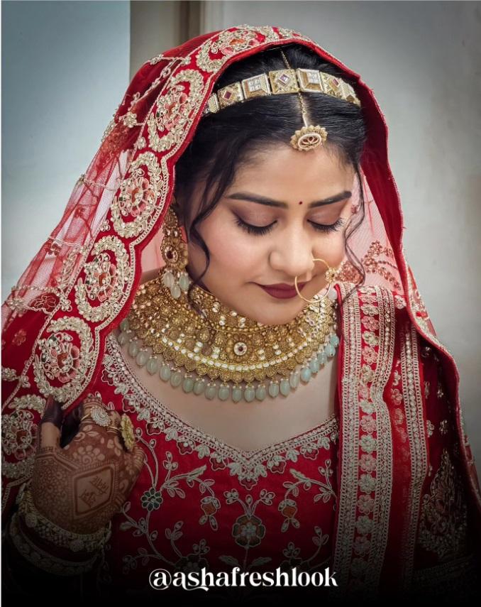 Timeless Bridal Elegance in Red & Gold This stunning bridal portrait captures the essence of traditional Indian beauty, adorned in a rich red lehenga with intricate gold embroidery. The delicate jewelry, flawless makeup, and graceful expression highlight purity, elegance, and cultural heritage. A perfect blend of tradition and modern charm, this look reflects the true spirit of a bride on her special day. For more info visit at: https://ashafreshlook.com/