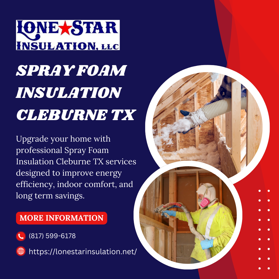 Enhance your home’s comfort and performance with expert Spray Foam Insulation Cleburne TX services. Proper installation helps reduce energy loss, control moisture, and strengthen indoor air quality. Whether for new construction or upgrades, professional application ensures long lasting results. Trust Lone Star Insulation, LLC for dependable service and improved home efficiency.