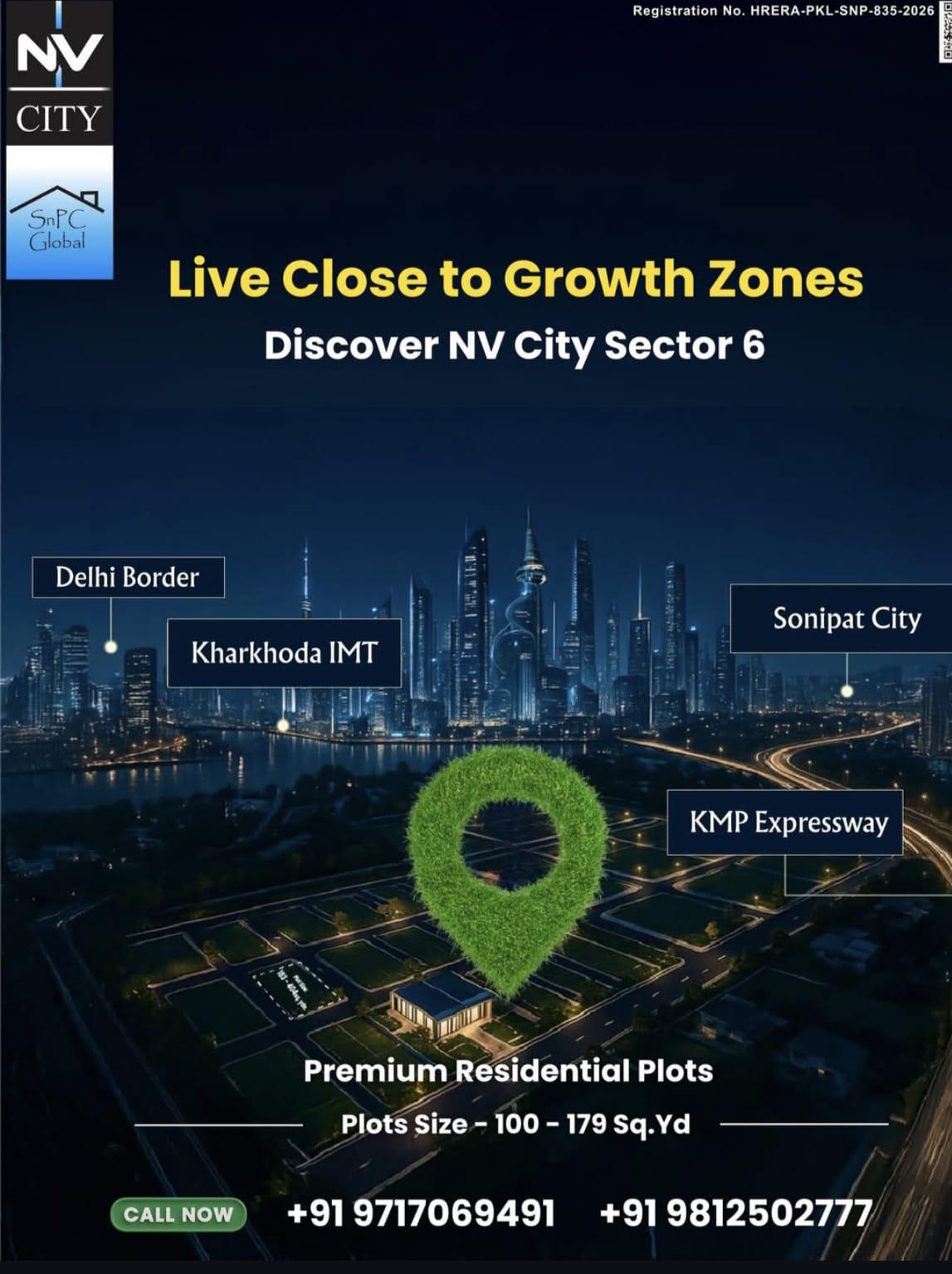 NV City (https://nvcitykharkhoda.com/) powered by Snpc Global Resiency (https://www.snpcglobal.com/) introduced by Vilas Chhikara and Satish Kumar Chhikara is positioned as the “new face of Kharkhoda development” by offering strategically located, DTCP/RERA-approved residential plots near major industrial hubs like the Maruti Suzuki plant and the KMP Expressway, promising modern amenities, gated community living, and quick access to Delhi NCR, transforming the area into a sought-after destination for both lifestyle and investment. It aligns with Haryana’s growth story, particularly the Deen Dayal Awas Yojna, providing affordable, registry-ready plots with clear titles, creating a secure and rapidly appreciating real estate opportunity.