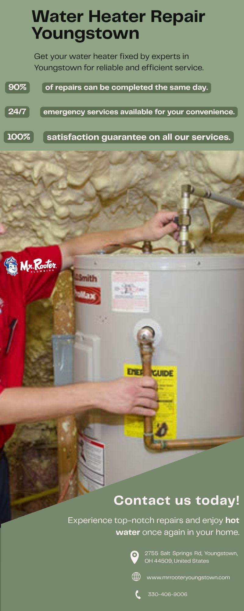 Fast & Efficient Water Heater Repair in Youngstown A malfunctioning water heater can disrupt your daily routine, leaving you without reliable hot water. Our expert team in Youngstown specializes in quick and efficient water heater repair, addressing leaks, strange noises, or inconsistent heating. With skilled technicians and a focus on long-lasting solutions, we restore your system’s performance and comfort in no time. Trust us to keep your home running smoothly with dependable water heater services. Learn More: https://www.mrrooteryoungstown.com/hot-water-heater-installation-youngstown-oh-p-544.html